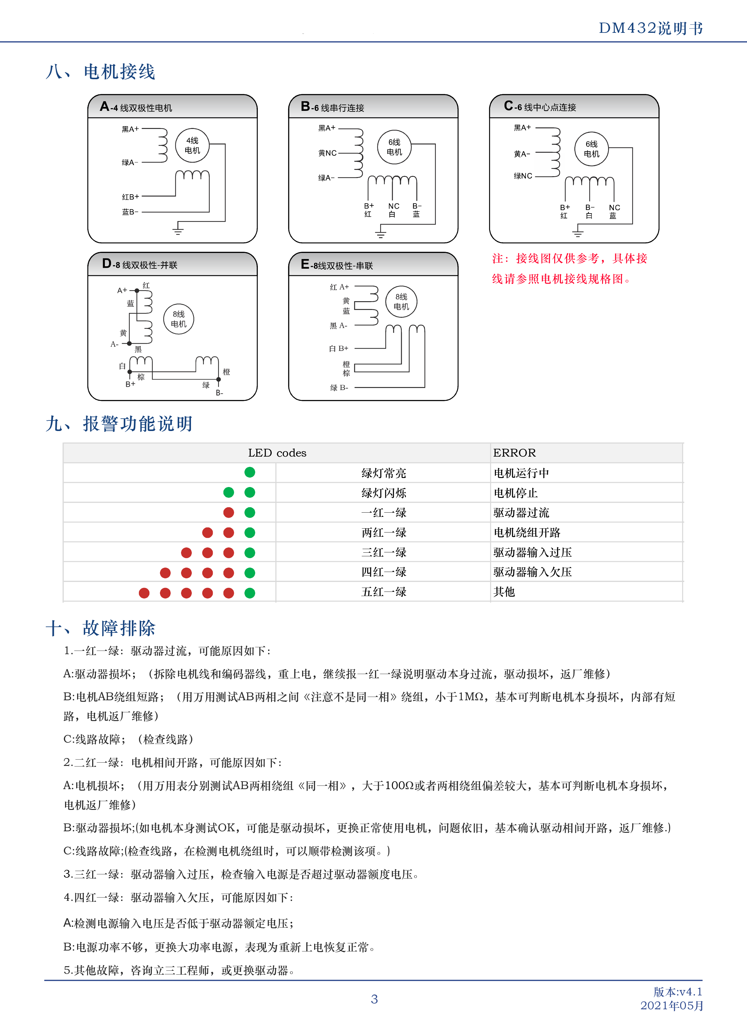 DM432是立成公司潛心研制的基于新一代基于32位DSP技術(shù)的高性能兩相數(shù)字式步進驅(qū)動器,驅(qū)動電壓DC8V-36V適配電流 32A以下,外徑42以下各種號兩相混合式步進電機該驅(qū)動器采樣類似伺服的控制原理,獨特的電路設(shè)計,優(yōu)越的軟件算法處理,使電機即使在低細分下也能運行平穩(wěn),幾乎沒有振動和噪音,平滑、精確地電流控制技術(shù)大大減少了電機發(fā)熱,外置16檔等角度恒力矩細分,最高128細分,光耦隔離差分信號輸入,抗干擾能力強,具有過壓、欠壓、過流保護等出錯保護功能。在點膠機、激光雕刻等中、低速應(yīng)用領(lǐng)域,其平穩(wěn)性、振動、噪聲性能優(yōu)勢明顯,可大大提高設(shè)備性能。