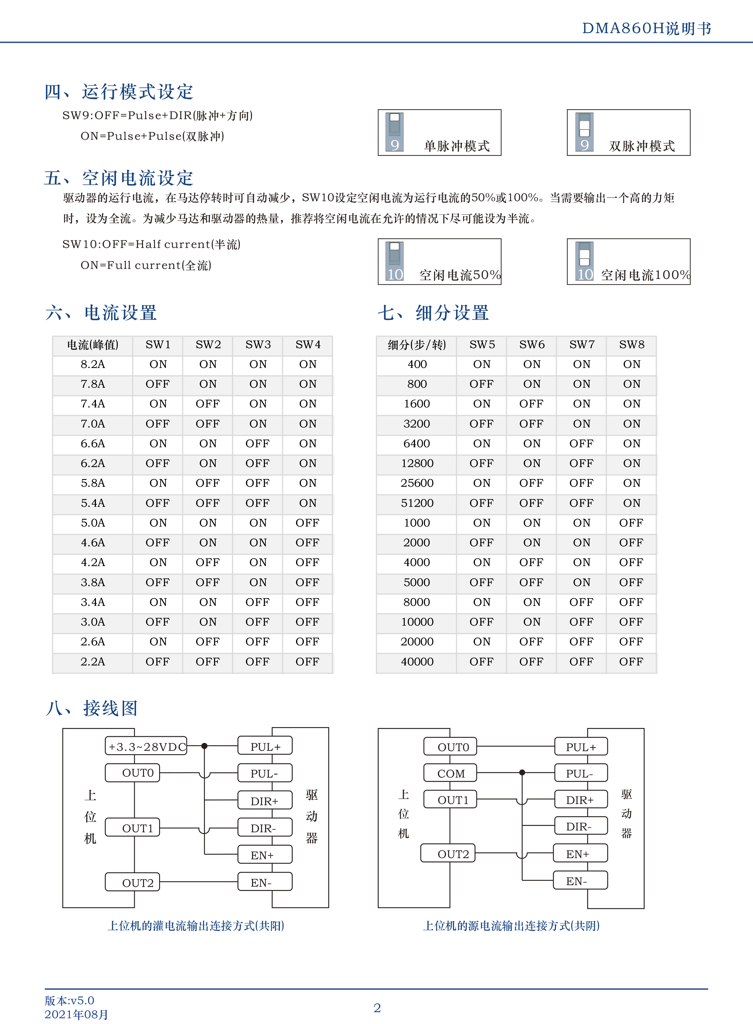 DMA860H是立成公司潛心研制的基于新一代基于32位DSP技術(shù)的高性能兩相數(shù)字式步進(jìn)驅(qū)動(dòng)器,驅(qū)動(dòng)電壓18-80VAC適配電流 8.2A以下,外徑86mm及以上的各種型號(hào)兩相混合式步進(jìn)電機(jī)。該驅(qū)動(dòng)器采樣類似伺服的控制原理,獨(dú)特的電路設(shè)計(jì),優(yōu)越的軟件算法處理,使電機(jī)即使在低細(xì)分下也能運(yùn)行平穩(wěn),幾乎沒有振動(dòng)和噪音,平滑、精確地電流控制技術(shù)大大減少了電機(jī)發(fā)熱,外置16檔等角度恒力矩細(xì)分,最高可調(diào)細(xì)分51200脈沖/轉(zhuǎn),光耦隔離差分信號(hào)輸入,抗干擾能力強(qiáng),具有過壓、欠壓、過流保護(hù)等出錯(cuò)保護(hù)功能。在端子機(jī)、激光雕刻等中、低速應(yīng)用領(lǐng)域,其平穩(wěn)性、振動(dòng)、噪聲性能優(yōu)勢明顯,可大大提高設(shè)備性能。