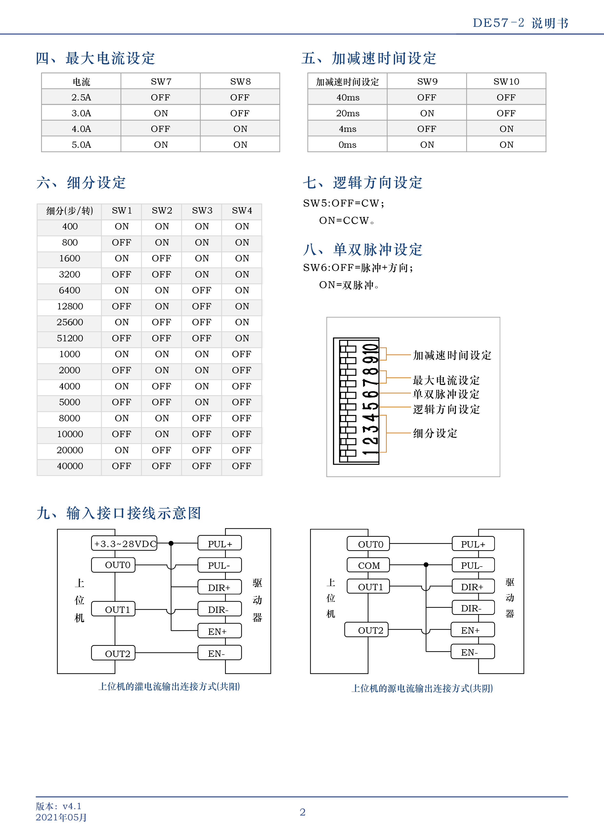 DE57-2 是公司潛心研制的基于新一代基于32位DSP技術的高性能兩相數(shù)字式步進驅(qū)動器,驅(qū)動電壓DC18V-75V,適配電流 5.0A以下,外徑42~60以下各種型號兩相混合式1000線閉環(huán)電機。驅(qū)動器采樣類似伺服的控制原理,獨特的電路設計,優(yōu)越的軟件算法處理,使電機即使在低細分下也能運行平穩(wěn),幾乎沒有振動和噪音,平滑、精確地電流控制技術大大減少了電機發(fā)熱,外置16檔等角度恒力矩細分,最高可調(diào)細分51200脈沖/轉(zhuǎn),光耦隔離差分信號輸入,抗干擾能力強,具有過壓、欠壓、過流保護等出錯保護功能。在3C、LED貼片等中、高速應用領域,其平穩(wěn)性、振動、噪聲性能優(yōu)勢明顯,可大大提高設備性能。