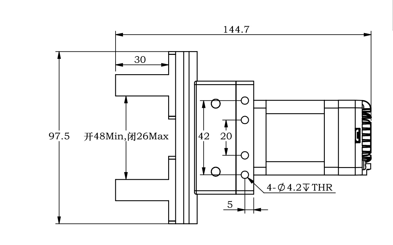 ## 集成一體化優(yōu)勢(shì)盡顯 傳統(tǒng)分體夾爪由多個(gè)獨(dú)立部件組成,如驅(qū)動(dòng)器、電機(jī)、控制器等,各部件之間需要繁瑣的布線和安裝調(diào)試,不僅占用大量空間,還增加了故障風(fēng)險(xiǎn)和維護(hù)成本。集成式步進(jìn)伺服電動(dòng)夾爪則將這些功能高度集成于一體,體積小巧緊湊。從資料中的尺寸數(shù)據(jù)可知,其整體結(jié)構(gòu)精致,僅重約0.2Kg,能夠輕松安裝在各種自動(dòng)化設(shè)備上,節(jié)省了寶貴的安裝空間,減少了設(shè)備整體體積,為生產(chǎn)線的布局優(yōu)化提供了便利。這種集成一體化設(shè)計(jì)大大簡化了系統(tǒng)架構(gòu),減少了部件之間的連接環(huán)節(jié),降低了因連接松動(dòng)等問題導(dǎo)致的故障概率,提高了系統(tǒng)的穩(wěn)定性和可靠性,使得設(shè)備運(yùn)行更加穩(wěn)定高效,有效減少了維護(hù)工作量和停機(jī)時(shí)間。 ## 精準(zhǔn)位置控制與快速響應(yīng),遠(yuǎn)超傳統(tǒng) 傳統(tǒng)分體夾爪在位置控制精度上往往難以滿足高精度生產(chǎn)需求,其定位誤差較大,容易導(dǎo)致抓取位置不準(zhǔn)確,影響產(chǎn)品質(zhì)量。而集成式步進(jìn)伺服電動(dòng)夾爪配備了1000線(4000 Counts)編碼器反饋系統(tǒng),能夠?qū)崿F(xiàn)極其精準(zhǔn)的位置控制。每旋轉(zhuǎn)一圈,編碼器可產(chǎn)生4000個(gè)計(jì)數(shù),通過精確的反饋機(jī)制,設(shè)備能夠?qū)崟r(shí)監(jiān)測夾爪的位置,并根據(jù)預(yù)設(shè)指令進(jìn)行精準(zhǔn)調(diào)整,定位精度極高。在抓取微小零部件時(shí),能夠準(zhǔn)確無誤地完成操作,有效避免了因位置偏差導(dǎo)致的抓取失誤。